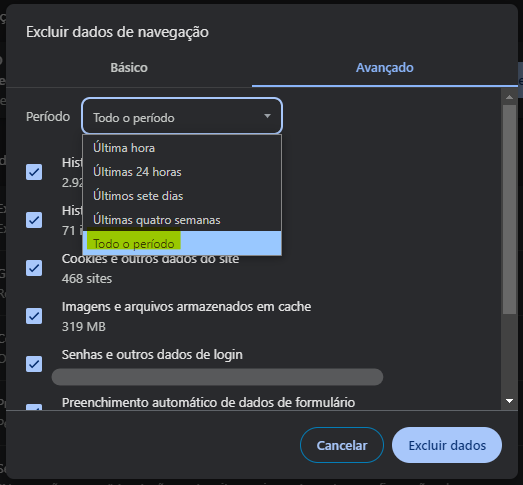 No canto superior direito, clique em Mais > Excluir dados de navegação.