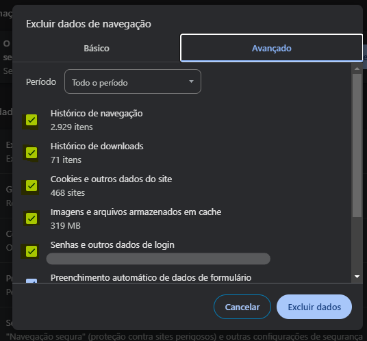 Selecione os tipos de informação que você quer remover.