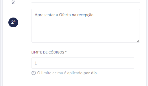 Limite de códigos: número de códigos que o usuário poderá solicitar em um mesmo dia: